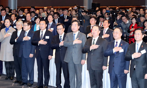 노동계에서는 김주영 한국노동조합총연맹 위원장이 참석했고, 정계에서는 이해찬 더불어민주당 대표와 황교안 자유한국당 대표, 손학규 바른미래당 대표 등이 모습을 드러냈다.