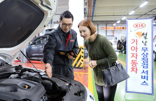 현대·기아차는 설 귀성길 차량 운행에 앞서 고객 차량의 주요 부품을 점검해 장거리, 장시간 운행에 따른 각종 사고를 방지하고자 이번 서비스를 마련했다. 현대·기아차는 서비스 거점을 방문한 고객에게 엔진오일, 냉각수, 브레이크, 배터리, 전구류, 타이어 공기압 및 마모 상태 등 안전한 장거리 운행을 위한 필수 사항 점검 서비스와 워셔액 보충 서비스 등을 무상으로 제공한다.