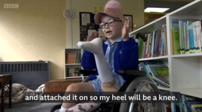17일(현지시간) 영국 BBC 등에 따르면 스태퍼드셔에 사는 아멜리아(9)는 2017년 8월, 왼쪽 다리가 부풀어 오르는 증상이 나타나 병원에 갔다가 뼈에 발생하는 악성종양을 의미하는 ‘골육종’ 진단을 받았다.