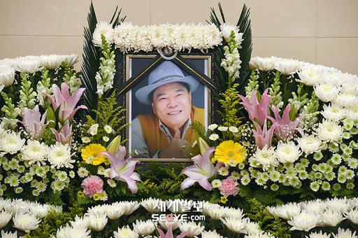 지난 21일 서울 강남구 삼성서울병원 장례식장에 마련된 희극인 고(故) 남보원(본염 김덕용―의 빈소에 화환과 영정이 설치돼있다. 한윤종 기자 hyj0709@segye.com
