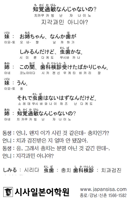 [시사일본어학원의 초단기 일본어 회화] 지각과민 아니야? 입력 : 2020-01-27 17:59:00 수정 : 2020-01-27 17:59:01 구글 네이버 유튜브 Copyright ⓒ 세계일보. 무단 전재 및 재배포 금지 세계일보 -