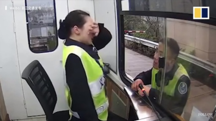 지난 28일 홍콩 사우스차이나모닝포스트(SCMP)가 게재한 영상에는 중국의 한 요금소에서 근무하는 여직원의 모습이 담겼다.