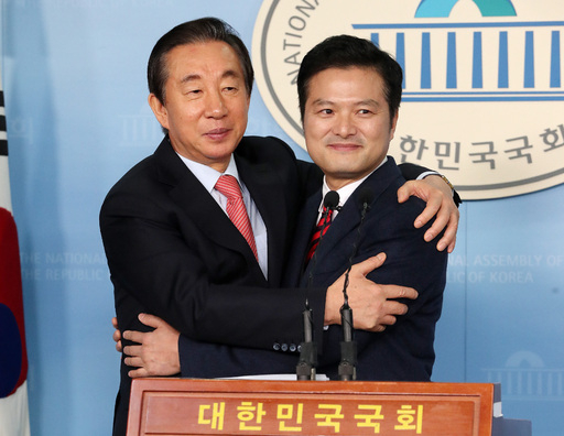 미래통합당 서울 강서을 후보로 나서는 김태우 전 청와대 특별감찰반 수사관이 24일 국회 정론관에 섰다. 그의 옆에는 현재 그 지역 의원인 김성태 전 자유한국당 원내대표가 자리했다. 정론관에서 출마소감을 밝힌 김태우 예비후보는 김성태 전 원내대표와 진한 포옹을 나눴다. 김 예비후보가 “총선 승리를 위해 이 한 몸 다 받치겠다. 감사하다”고 마무리 발언을 하자, 옆에 섰던 김 전 원내대표가 어깨를 두드리며 약 30초 간 껴안았다.