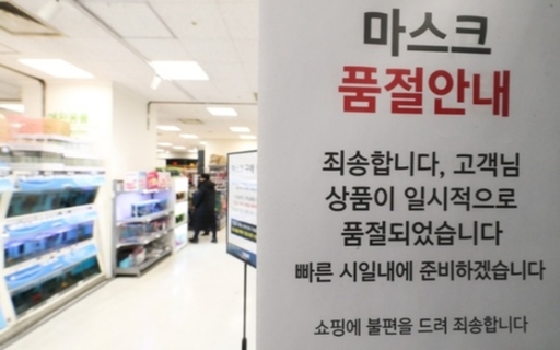 지난달 서울 시내 한 대형마트에 마스크·손 소독제 품절 안내문이 걸려 있다. 연합뉴스