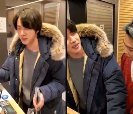 공개된 영상에서 진은 슈가의 생일을 축하하려고 대신 식사비를 결제했다.