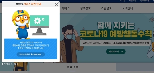 이날 정부24 첫 화면에는 '정부24 서비스 지연 안내' 팝업과 함께 "사용량 급증으로 서비스가 원활하지 않음을 양해하여 주시기 바랍니다"라는 문구가 떴다.