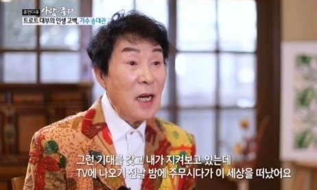송대관 부동산 사기 사건에 휘말려 방송 출연 정지 처분도 받았고, 160억원 부채를 갚아야 하는 처지에 놓였다.