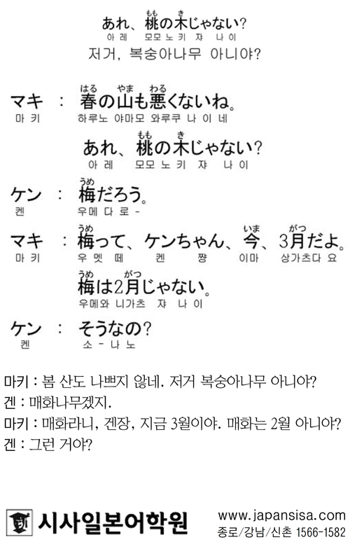 [시사일본어학원의 초단기 일본어 회화] 저거, 복숭아나무 아니야? 입력 : 2020-03-13 20:54:38 수정 : 2020-03-13 20:54:40 구글 네이버 유튜브 Copyright ⓒ 세계일보. 무단 전재 및 재배포 금지 세계일보 -