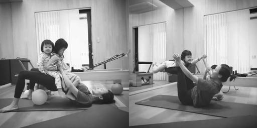 배우 소유진이 아이들과 놀아주는 동시에 운동을 하는 모습을 공개했다.