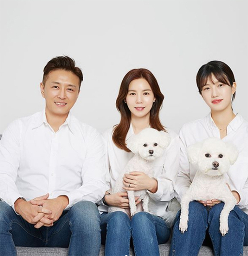 공개된 사진 속에는 박시은·진태현 부부와 딸 다비다가 하얀 상의와 청바지를 입고, 반려견 ‘토르’, ‘미르’와 함께 정면을 응시하고 있다.