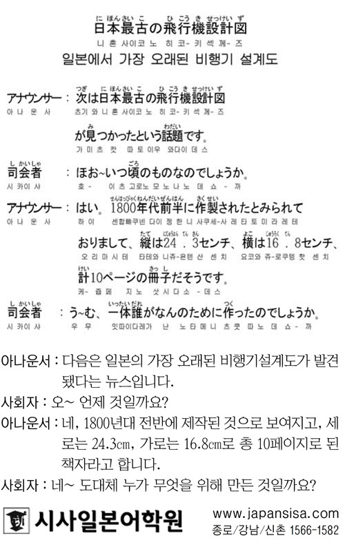 [시사일본어학원의 초단기 일본어 회화] 일본에서 가장 오래된 비행기 설계도 입력 : 2020-04-07 18:15:42 수정 : 2020-04-07 18:15:43 구글 네이버 유튜브 Copyright ⓒ 세계일보. 무단 전재 및 재배포 금지 세계일보 -