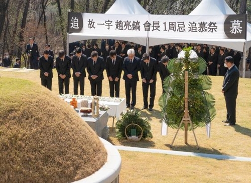 한진그룹은 8일 오후 고 조양호 회장의 1주기를 맞아 경기도 용인시 하갈동에 위치한 신갈 선영에서 가족과 친지, 그룹 임원 등 100여명이 참석한 가운데 30여분간 추모 행사를 열었다.