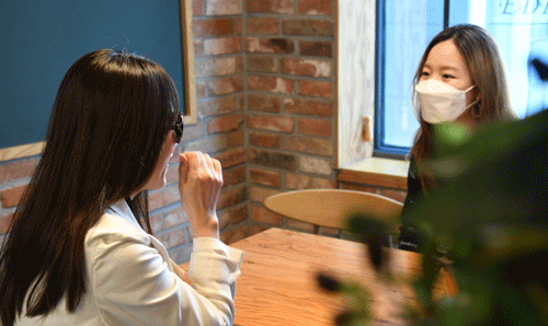 어둠 속의 대화가 끝난 뒤 바다씨와 밝은 곳에서 다시 마주 앉았다. 20대 시절 유치원 교사로 일하다 시각장애가 생긴 후 18년간 일을 하지 못했던 바다씨는 ‘블라인드 마음보듬’ 일을 시작한 후 경제적 자립과 자존감 회복에 큰 성과를 얻었다고 말했다. 바다씨는 “시각장애인이 비교우위를 갖는 예민한 청각을 활용해 상담하고 공감해주는 일이 ‘사회의 일원으로 제 역할을 하고 있다’는 자부심을 느끼게 한다”며 “대표적인 시각장애인 특화직업인 안마사가 적성에 맞지 않아 사회생활을 포기하고 있던 중 ‘마음보듬사’ 일을 알게 됐다. 이 일을 하며 시각장애인이 된 지 18년 만에 처음으로 부모님께 용돈을 드렸다. 자립할 수 있다는 걸 가족들에게 보여준 것이 제겐 정말 큰 의미였다”고 말했다.