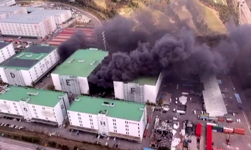 경기 군포시 물류터미널에서 일어난 화재가 불길이 잡히며 화재 대응단계가 1단계로 하향했다.