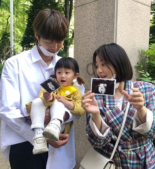 허민은 자신의 인스타그램에 가족과 함께 찍은 사진을 올렸다. 허민과 첫째딸 아인양의 손에는 태아 초음파 사진이 들려있다.