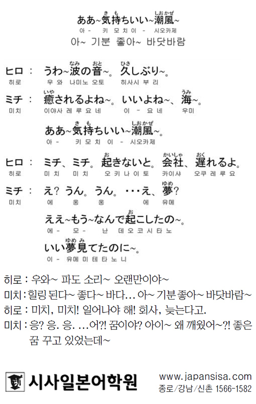 [시사일본어학원의 초단기 일본어 회화] 아~ 기분 좋아~ 바닷바람