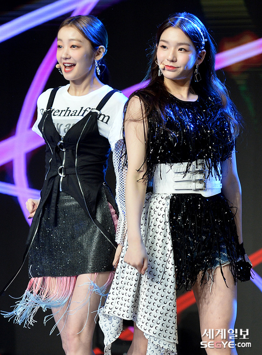 그룹 시크릿넘버 레아(왼쪽)와 수담이 19일 오후 서울 강남구 청담동 일지아트홀에서 열린 데뷔 싱글 '후 디스?'(Who Dis?)의 쇼케이스에 참석해 열띤 공연을 펼치고 있다.
