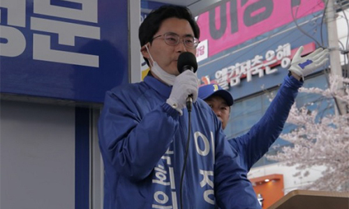 더불어민주당 이정문 의원이 지난 4·15총선 선거운동 과정에서 유세를 하는 모습. 블로그 캡처