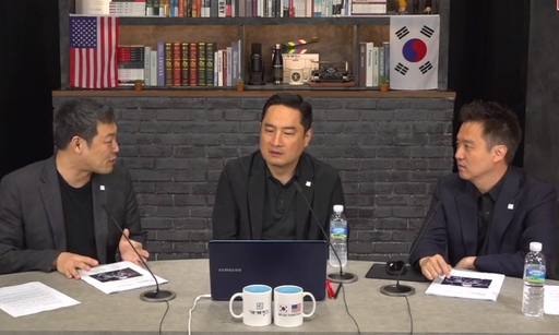 2일 공개된 유튜브 영상에서 김용호 전 기자, 강용석 변호사, 김세의 전 MBC 기자(왼쪽부터)가 이야기를 나누고 있다. 유튜브 가로세로연구소 캡처