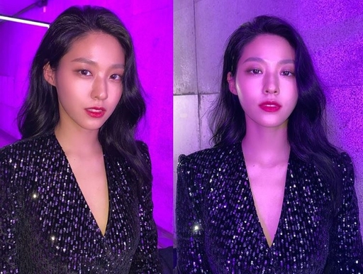 공개된 사진에는 보랏빛 조명 아래 화려한 메이크업을 하고 가슴이 파인 의상을 입고 있는 설현의 모습이 담겼다.