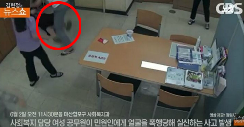 앞서 지난 8일 인터넷에는 창원시의 한 구청에서 40대 민원인 A(46·남)씨가 복지담당 여성 공무원 B(50대)씨를 폭행하는 동영상이 올라와 종일 화제가 됐다.