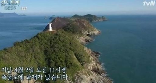 화면 속에는 지난 4월2일 오전 11시 발생한 화재로 섬의 한 부분이 검게 탄 모습을 하고 있어 안타까움을 자아냈다.