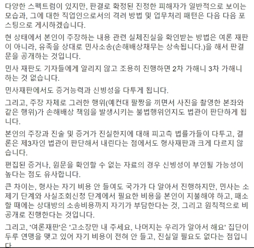 다양한 스펙트럼이 있지만, 판결로 확정된 진정한 피해자가 일반적으로 보이는 모습과, 그에 대한 직업인으로서의 격려 방법 및 업무처리 패턴은 다음 다음 포스팅으로 게시하겠습니다.