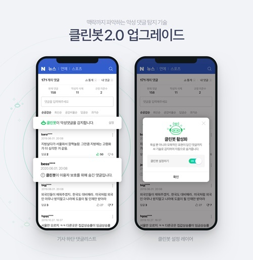 업그레이드된 AI 클린봇은 악성 댓글 판단 기준을 ‘욕설 단어’에서 ‘문장 맥락’을 고려하는 것으로 확대했고 종전보다 기사에 따라 1.5~2배가량 향상된 탐지 성능을 확인했다.
