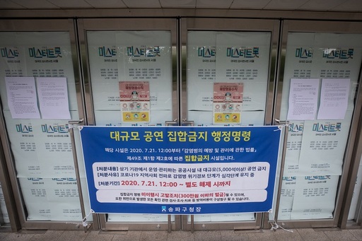 앞서 송파구는 지난 21일 5000명 이상이 모이는 대규모 공연에 대한 집합금지 행정명령 공고를 내리고, 올림픽공원 체조경기장(KSPO돔)에서 열릴 예정이던 미스터트롯 서울 콘서트를 잠정 연기했다. 이번 행정명령이 내려지면서 각각 1만5000석, 5000석 관람석 규모의 KSPO돔과 핸드볼 경기장도 대상에 포함됐다.