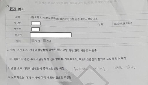 투쟁본부가 공개한 ‘선거법위반행위 조사결과보고’에 따르면 서울시선관위는 서울 송파구위원회 개표소에서 사전투표함 봉인지 위조 주장을 하며 개표 행위를 방해한 혐의를 받는 부정선거진상규명연합회의 김모 씨와 박모 씨 등 5명의 고발이 필요하다는 의견을 담아 중앙선관위에 보고했다. 서울시선관위는 지난 4월 1일부터 27일까지 김씨의 통신 내역을 조회해 투표소 참관인들과 단체 관계자 등 5명과의 휴대전화 송·수신 내역을 첨부했다. 서울시선관위는 △사전투표 보관 장소를 보여 달라며 소란을 피우며 업무를 방해한 점 △사전투표함·일반투표함 봉인지 서명이 위조됐다고 선동한 점 △사전투표참관인 서명이 위조됐음을 주장하는 영상을 유튜브에 게시한 점 등을 고발 사유로 설명했다.