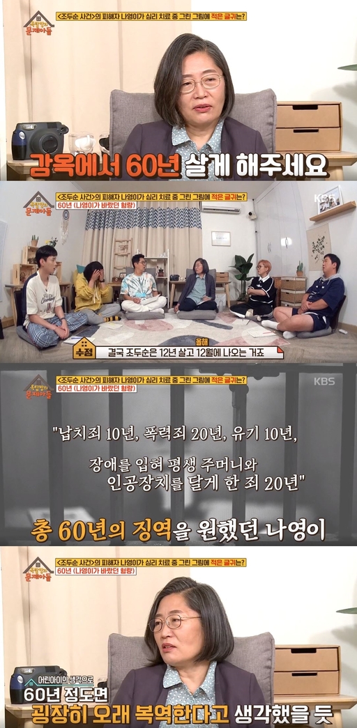 이 교수는 “기억이 났다. 감옥에서 (조두순이) 60년 살게 해달라고 했다”며 “결국 조두순은 12년을 복역하고 올해 12월에 출소한다”고 답해 출연진의 탄식이 이어졌다.