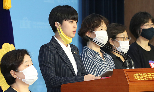 정의당 류호정 의원이 지난 12일 오후 서울 여의도 국회 소통관에서 성범죄 처벌 강화를 위한 형법 개정안 발의 기자회견을 하고 있다. 연합뉴스