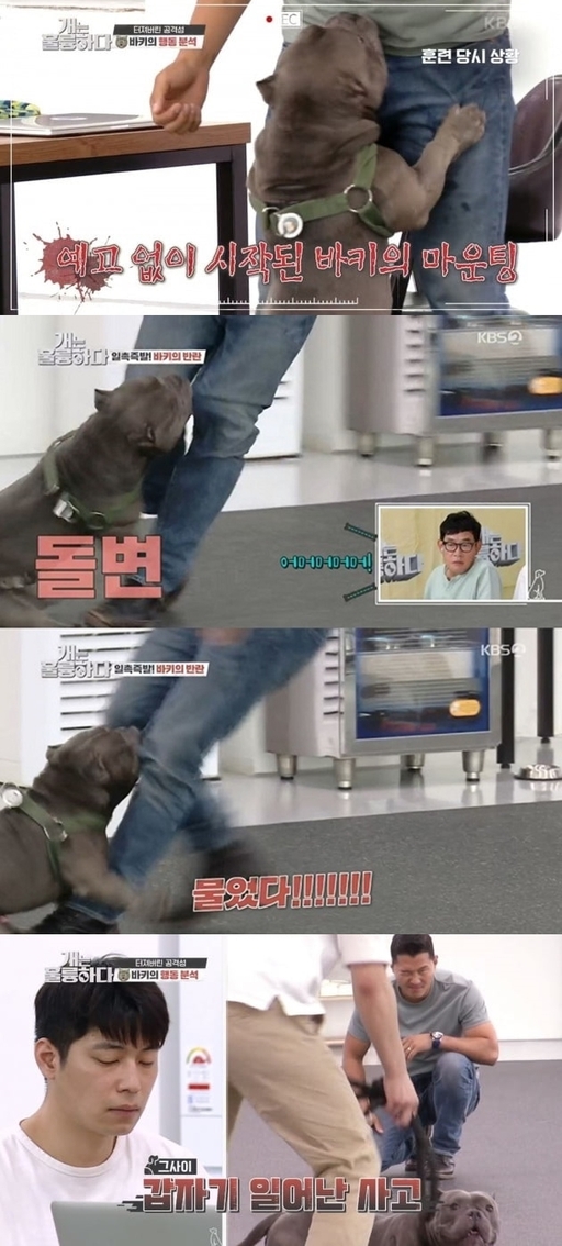 바키는 계속 위협적인 태도로 강형욱의 허벅지를 공격했다.