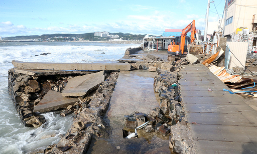 파도를 막기 위해 이 일대에 설치된 방파제도 곳곳이 부서져 태풍 위력을 실감케 했다.