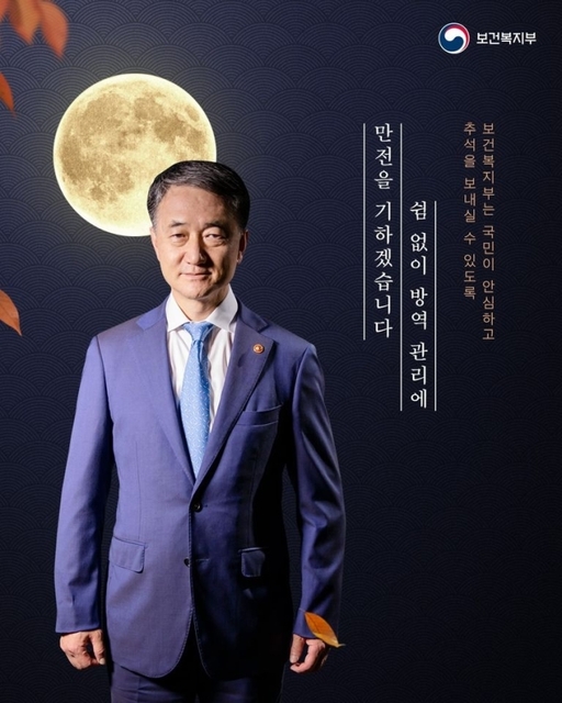 보름달이 뜬 밤하늘을 배경으로 박 장관이 서 있는 게시물에는 '보건복지부는 국민이 안심하고 추석을 보내실 수 있도록 쉼 없이 방역 관리에 만전을 기하겠습니다'라는 메시지가 실렸다.