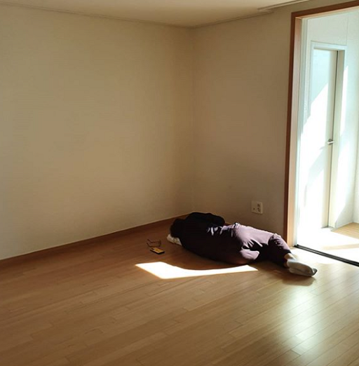 함께 공개한 사진 속 그는 텅빈 집안에 누워있다. 들어오는 햇빛을 쬐며 잠시 숨을 고르는 모습으로 보인다.