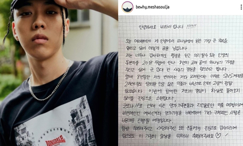래퍼 비와이(27∙본명 이병윤)가 자필로 결혼을 발표했다.