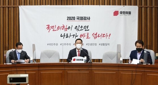 주호영 국민의힘 원내대표가 23일 국회에서 열린 당 국정감사 대책회의에서 모두발언하고 있다. 뉴스1