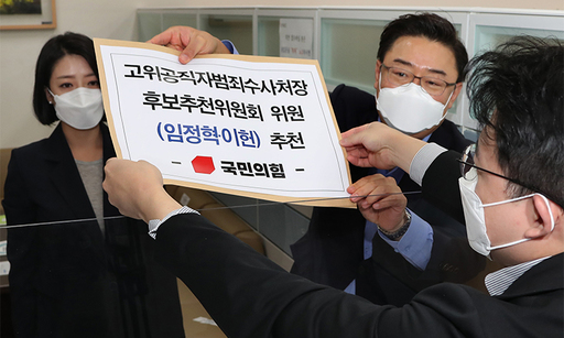 국민의힘은 이날 자당 몫 공수처장 후보추천위원으로 대검찰청 차장 출신 임정혁 변호사와 대한법률구조공단 이사장을 지낸 이헌 변호사를 선정하고 국회 의안과에 명단을 제출했다.