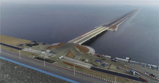 내수면에 흙을 쌓아 건설한 동서도로는 새만금청이 사업지 중심부에 건설 중인 십자(+)형 간선도로 중 하나다. 현재 건설 공사가 한창인 새만금 신항과 맞닿은 2호 방조제에서 새만금∼전주 간 고속도로(55.1㎞)가 시작되는 김제시 진봉면까지 20.4㎞를 연결한다. 농림축산식품부와 2개 구간으로 나눠 왕복 4차로로 구축했다. 2015년부터 총사업비 3637억원을 투입했다.