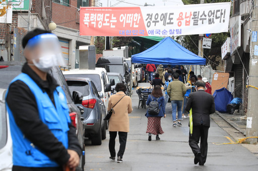 사랑제일교회 앞에는 이날 예배를 드리려는 교인들로 줄이 이어졌다. 성북구는 지난달 29일 사랑제일교회에 내렸던 집한제한 해제 명령을 내렸다. 이에 앞서 성북구는 지난 8월13일 이 교회 교인 5명이 코로나19 확진 판정을 받자 교회 폐쇄 명령을 내리고 교인을 퇴거시켰다.