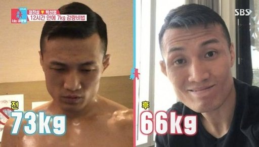 이 과정을 세 번 반복한 정찬성은 마지막 순서로 간이사우나에 들어갔고, 결국 7㎏을 줄이는데 성공했다. 이에 제작진은 ‘절대 따라하지 말라’는 경고문을 자막으로 내보냈다.