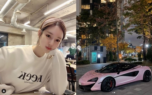 공개된 사진 속에는 연분홍색으로 래핑이 된 영국 슈퍼카 ‘맥라렌 570s’가 눈길을 끈다. 이 차량은 판매 가격이 3억원에 달하는 고가의 모델로, 2015년 국내에 처음 공개됐다.