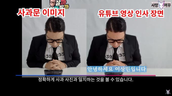또 사망여우는 이상민이 사과문에 사용한 사진이 사실은 재사용된 사진이라고 밝히며 사과의 진정성을 지적했다. 그는 “이상민님은 시청자분들께 사과를 하는 이 사과문에 다른 영상의 인사를 하는 모습을 따다가 그대로 재탕을 했다”며 “시청자에게 고개를 숙이는 그 사진 하나를 다시 찍는 게 그렇게 힘든 일이었던 걸까”라고 비판했다.