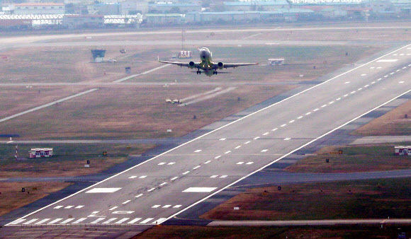 국무총리실 산하 김해신공항 검증위원회가 17일 정부서울청사에서 브리핑을 열고 "김해신공항 계획은 상당부분 보완이 필요하고 확장성 등 미래 변화에 대응하기 어렵다"며 사실상 백지화 결론을 내렸다. 사진은 이날 오후 부산 김해국제공항 활주로에서 이륙하는 항공기의 모습. 뉴시스