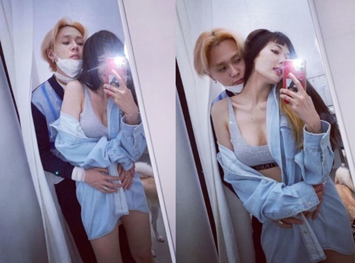공개된 사진 속에서 현아는 속옷을 입은 채 긴 청셔츠를 걸치고 있다. 현아를 뒤에서 꼭 껴안은 던의 모습에서 현실 커플의 애틋함이 느껴진다.