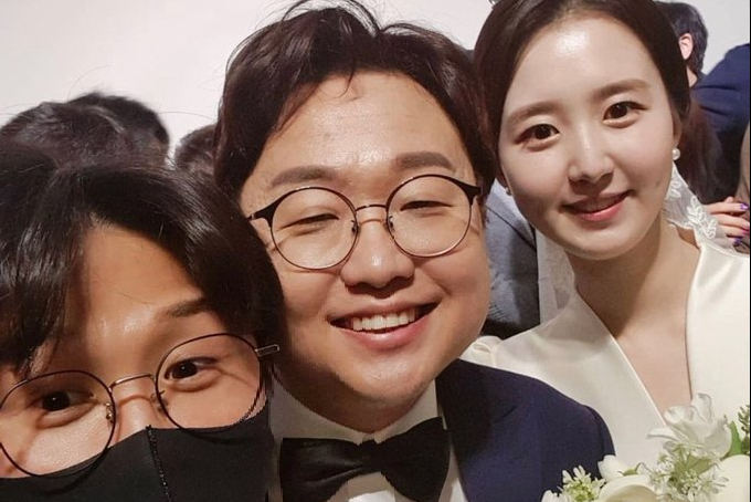 개그맨 박휘순(44∙사진 가운데)이 17살 연하 천예지(33∙사진 오른쪽) 씨와 결혼식을 올린 가운데, 많은 동료들이 축하의 말을 전했다.