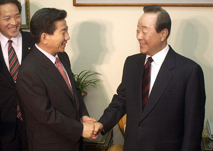 16대 대선을 코앞에 둔 2002년 11월. 집권당인 새천년민주당은 국민통합21과 대선후보 단일화를 놓고 벼랑 끝 협상을 이어가고 있었다. 치킨게임 같던 줄다리기는 민주당 노무현 후보가 끝냈다. 자신이 주장해온 국민참여 경선을 포기하고 여론조사를 통한 단일화 방식을 수용했다. 통합21 정몽준 후보가 원하던 대로다. 단일화 결과는 노 후보의 승리였다. ‘버리는 정치’가 국민에게 감동을 줬다는 게 중평이다. 양보·희생은 ‘노무현 정치’의 바탕이다.