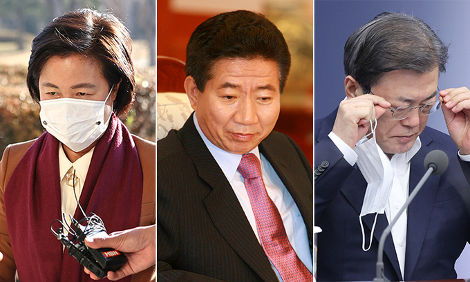 원조 친노인 민주당 이광재 의원은 ‘추·윤 갈등’과 관련해 “노 대통령은 틀림없이 뭐라고 했을 거다. 아마도 당사자에게 직접”이라고 밝혔다고 중앙일보가 6일 보도했다. 문 대통령의 침묵과 비교한 것이다. 문 대통령은 7일 청와대 수석·보좌관 회의에서 “방역과 민생에 너나없이 마음을 모아야 할 때 혼란스러운 정국이 국민들께 걱정을 끼치고 있어 대통령으로서 매우 죄송한 마음”이라고 했다. 직접 언급하진 않았지만, 추·윤 사태를 사실상 염두에 둔 발언으로 해석됐다. 처음인 사과 메시지는 사태를 방관한다는 비판 여론과 지지율 급락을 의식한 것으로 보인다. 그러나 근본적 해결책이 없으면 위기는 더 커질 수 있다. 분수령은 10일로 예정된 윤 총장에 대한 법무부 징계위원회다. 징계위가 윤 총장 중징계를 결정하고 추 장관이 해임을 건의하는 시나리오가 현재로선 유력하다. 문 대통령이 해임을 수용하면 일단 검찰과의 전쟁을 끝낼 수 있다. 그러나 윤 총장 징계가 무원칙한 추 장관이 강행한 것인 만큼 문 대통령에겐 낙인으로 남을 수 있다. 노 전 대통령이 경멸했다는 ‘원칙 없는 승리’의 딱지가 붙는 셈이다. ‘노무현 유산 탕진’의 책임론이 문 대통령에게 쏠리게 되는 것이다.