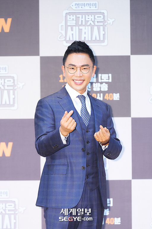 방송인 설민석이 11일 오후 온라인 생중계로 진행된 tvN '설민석의 벌거벗은 세계사'의 제작발표회에 참석해 포즈를 취하고 있다.